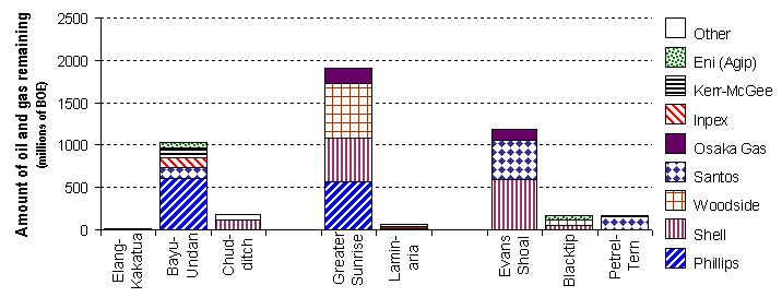 “Reserves in Timor Sea” shows the amount each company owns of both East Timorese and Australian parts of the Timor Sea oil and gas deposits.
