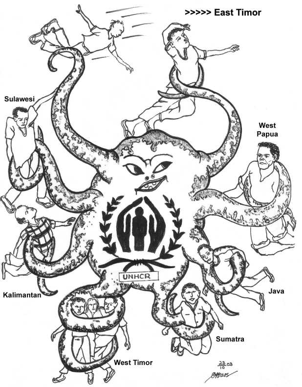 In early 2000, long before UNHCR ended refugee status, the government of Indonesia stopped assistance to the refugees as a strategy to move them from the camps. According to a workshop in Yogyakarta on refugees funded by Bakornas PBP and UN-OCHA, the Indonesian Government will end its sector refugees fund in 2004. Remaining government assistance is not specifically for the refugees, but is part of NTT province and local government’s poverty reduction programs for the NTT general population. It means the Indonesian government assumes the refugees are part of poor communities in NTT, not those forcibly moved from their places of origin to save their lives because of conflict or government policy.