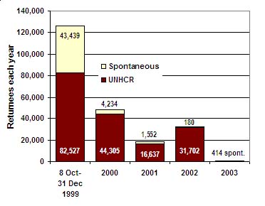 From 1999 to 2003 UNHCR and IOM (International Organization for Migration) have assisted with the repatriation of refugees to East Timor, facilitating transport from all parts of Indonesia. If the refugees return to East Timor by vehicle, ship, or airplane, IOM and UNHCR provide transportation to their places of origin. Most of the refugee returns to East Timor were organized by UNHCR, however some refugees returned on their own initiative, without support from UNHCR or IOM (see Table 1).