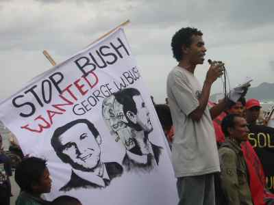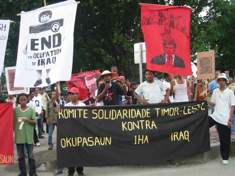 Last year, we East Timorese joined people around the world who love peace and justice in our cry not to invade Iraq. The United States refused to listen, and pursued its disastrous invasion. Today, we again join with people worldwide to demonstrate that we are still against the illegal and deadly occupation of Iraq.